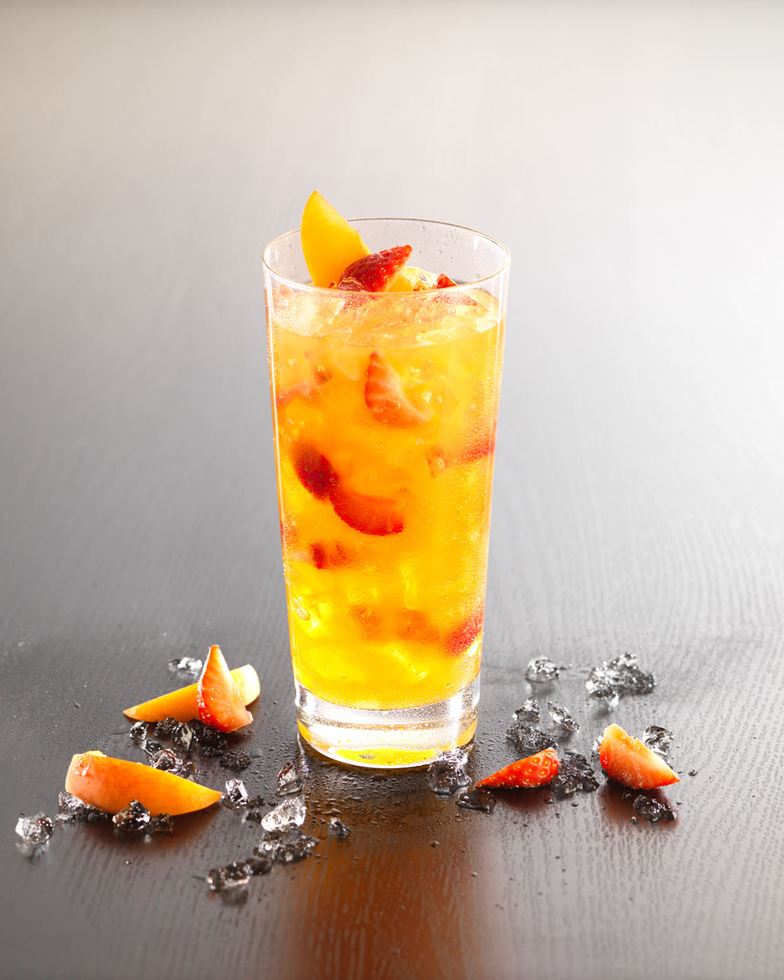 Zubereitung: Einen Esslöffel Aprikosenoder Erdbeerkonfitüre mit etwas Wasser verrühren bis eine sirupähnliche Konsistenz entsteht. Den Sirup zusammen mit Baikal Vodka und Zitronensaft in ein mit crushed Eis gefülltes Glas geben, mit Aprikosensaft auffüllen und gut verführen. Die Garnitur besteht aus Erdbeeren und Aprikosenspalten.