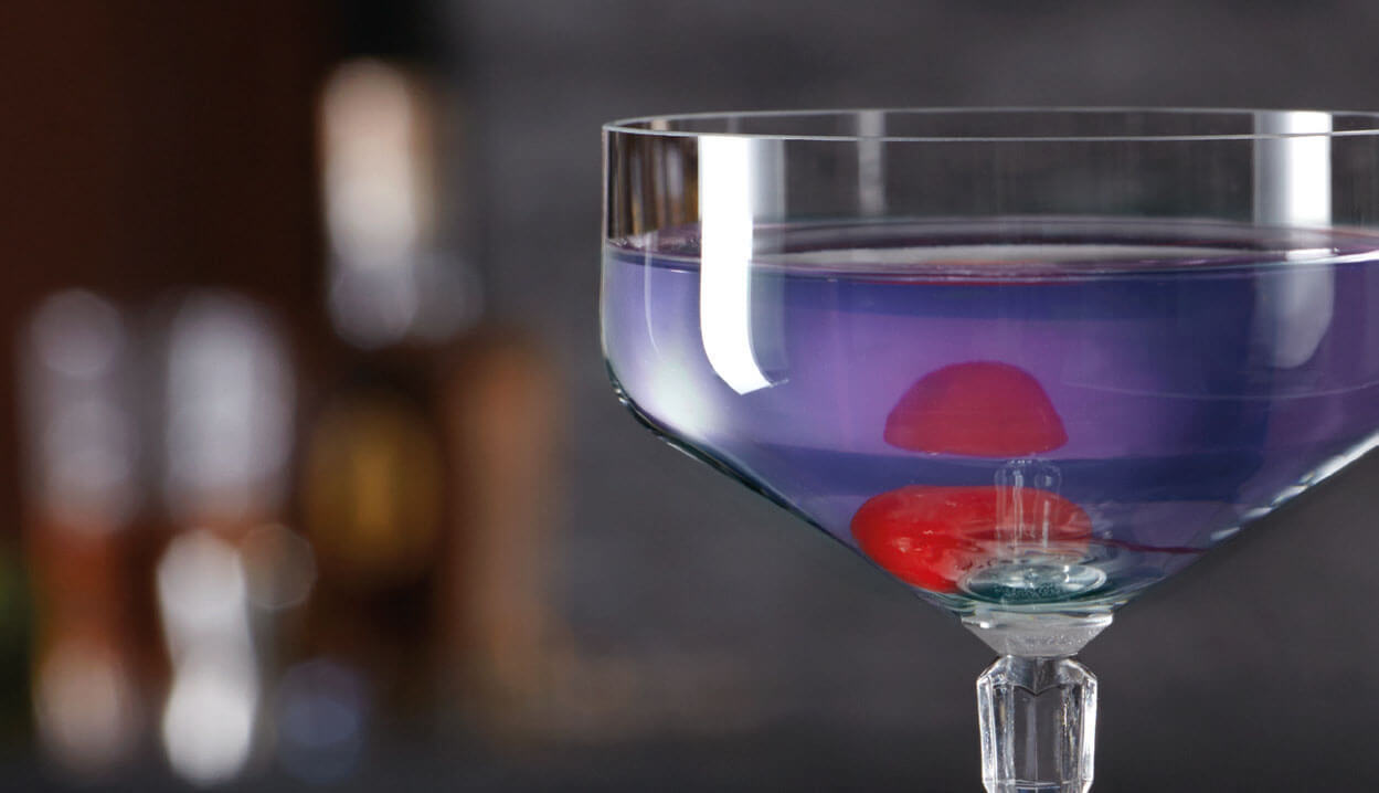 Zubereitung: Geben sie den London Dry Gin, frischen Zitronensaft, Marashino-Likör und den Veilchen-Likör in einen Shaker und mischen dies kräftig durch. Anschließend geben sie es durch ein Feinsieb in die Coupette.