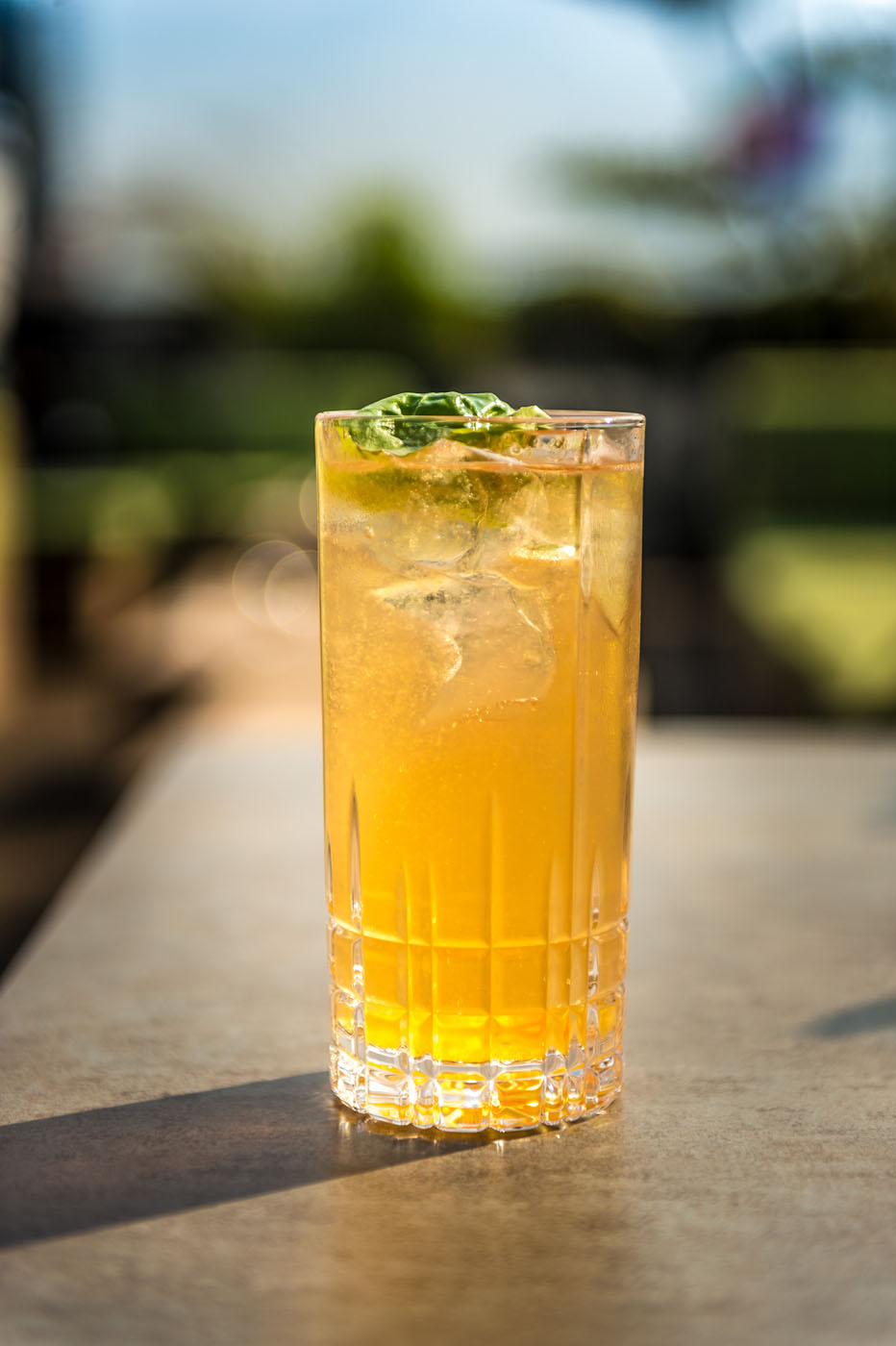 ** Cola Reduktion: 1 l Cola, 5 getrocknete Lorbeerblätter, 5 getrocknete Basilikumblätter, 1 Vanilleschote aufkochen (45 min – 1 Stunde), 3 cl Läuterzucker zugeben.