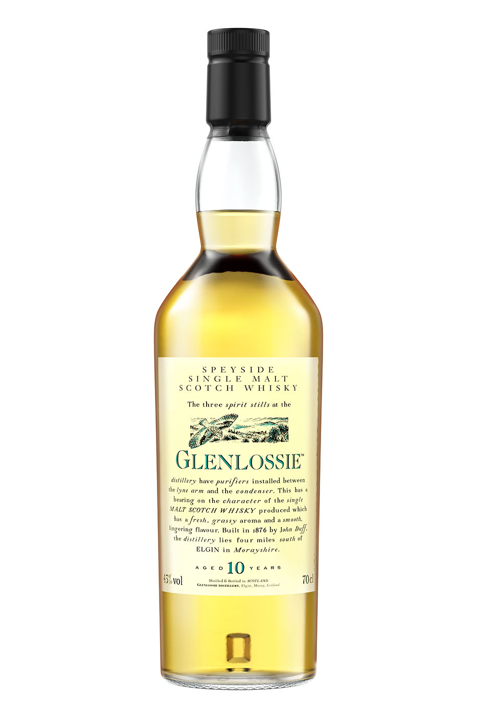 Im Fall des Glenlossie 10 Jahre Flora & Fauna handelt es sich um einen Single Malt aus der Glenlossie Distillery in der schottischen Speyside. Im Jahr 1876 von John Duff errichtet, setzte man ursprünglich auf Wasserkraft anstelle Dampf. Die offiziellen Tasting-Notes sprechen von einem süßen, leichten und eleganten Single Malt. Er bezaubere durch ein florales, fruchtiges Aroma mit Noten von Zitronencreme, frisch gemähtem Gras und Rhabarber. Der Geschmack sei frisch und fruchtig, mit Bienenhonig und Malz, und gipfele in einem kurzen bis mittellangen Abgang mit Zitrus, Sellerie, weißem Pfeffer und dunkler Schokolade. Die unverbindliche Preisempfehlung wird mit 49,90 Euro für die 0,7-l-Flasche angegeben.