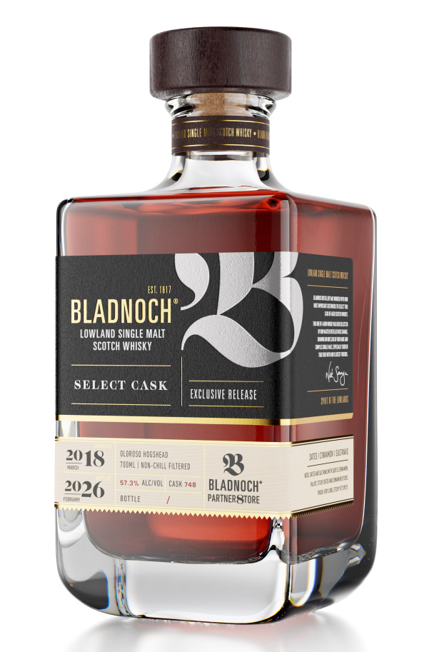Nicht nur exklusiv für den deutschen Markt, sondern sogar ausschließlich nur für die als „Bladnoch 8“ betitelten Partnerstores in Deutschland ist das Bladnoch Single Oloroso Sherry Hogshead #748 bestimmt. Die Destillation dieses ungetorften Single Malt Scotch Whiskys reicht in den März 2018 zurück. Es folgte eine über sieben Jahre lange Vollreifung in dem First-Fill-Oloroso-Sherry-Hogshead mit der Nummer 748. Im zurückliegenden Februar nahm die Bladnoch Distillery das Abfüllen mit einem Alkoholgehalt von 57,3 Prozent, ohne Kältefiltration und ohne Farbstoff vor. Aus dem Einzelfass konnten 318 Flaschen à 0,7 Liter geholt werden.