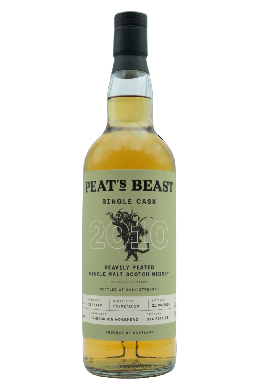 Die Destillation des Peat‘s Beast Single Cask 2010 erfolgte am 2. Februar 2010. Die 15 Jahre lange Reifung fand in einem Ex-Bourbon-Hogshead statt. Am 21. August dieses Jahres wurde naturbelassen mit einer Fassstärke von 57 Prozent abgefüllt. Es entstanden 324 Flaschen à 0,7 Liter.