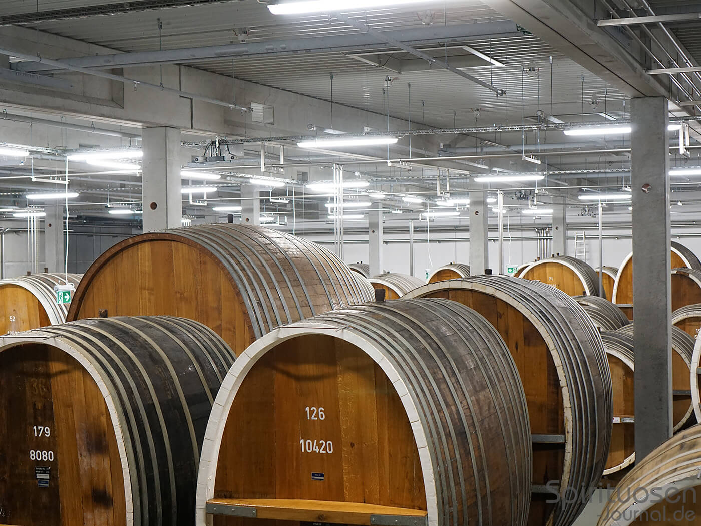 Nach der Filtration werden die vier Mazerate vermählt und als sogenannter Grundstoff für bis zu zwölf Monate in große Eichenholzfässer gegeben. Die Fässer sind vielfach vorbelegt beziehungsweise stark ausgespült, damit keine Reifung im eigentlichen Sinne, sondern lediglich eine Harmonisierung und Oxidation erfolgt. Von diesen teils einige tausend Liter großen Fässern beherbergen die Keller in Wolfenbüttel derzeit gut 400 Exemplare.