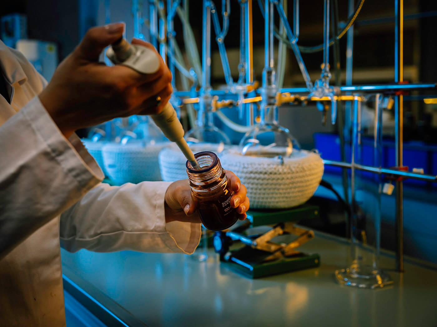 Allen Jägermeister Kräuterlikören gemein ist wiederum das finale Abmischen mit Flüssigzucker, Karamell, Neutralalkohol und Wasser. Die Alkoholvolumina des Kernsortiments werden zwischen 33 und 38 Prozent eingestellt. Insgesamt zwei Abfüllanlagen betreibt das Unternehmen: zum einen in Wolfenbüttel-Linden und zum anderen in Kamenz in Sachsen.