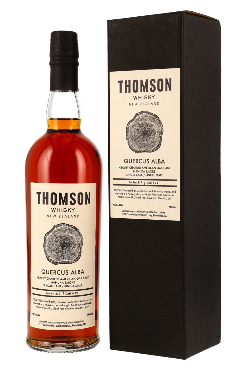 Exklusiv für den deutschen Distributor Kirsch Import und dessen Kundenkreis aus Fachhändler ist das Thomson Quercus Alba Manuka Smoke Single Cask #23 bestimmt. Auch diesen New Zealand Single Malt destillierte Thomson Whisky aus mit Manuka Holz geräuchertem Malz heimischer Gerste. Die Reifung fand exklusiv in dem stark ausgebrannten Virgin-American-Oak-Barrel mit der Nummer 23 statt. Ein Reifealter wird nicht kommuniziert. Abgefüllt wurde mit einem Alkoholvolumen von 46 Prozent, ohne Kältefiltration und ohne Farbstoff. Aus dem Einzelfass kamen 239 Flaschen à 0,7 Liter. Von offizieller Seite ist die Rede von Noten von Vanille, Schwarztee, Nelke und honigartigen Manuka-Ölen.