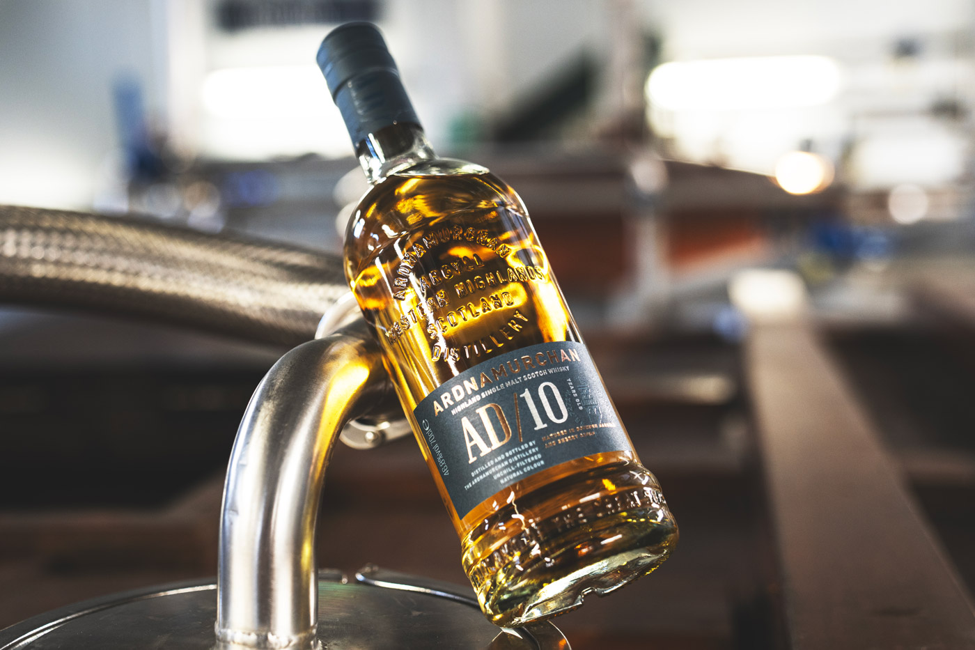 Für den neuen Ardnamurchan AD/ 10 Jahre vermählte die Ardnamurchan Distillery 52 Prozent ungetorfte und 48 Prozent getorfte Single Malts. Die mindestens zehnjährige Reifung fand zu 98 Prozent in Ex-Bourbon-Barrels und zu zwei Prozent in Ex-Sherry-Casks statt. Abgefüllt wurde mit einem Alkoholvolumen von 46,8 Prozent, ohne Kältefiltration und ohne Farbstoff.