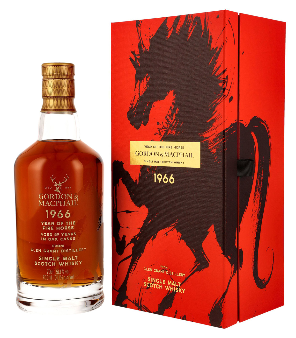 In das neue Jahr ist das schottische Familienunternehmen Gordon & MacPhail mit drei Raritäten gestartet. Angeführt wird das Trio jahrzehntealter Single Malt Scotch Whiskys vom Glen Grant 1966/2025, der im Zeichen des „The Year of the Fire Horse“ stehen soll.