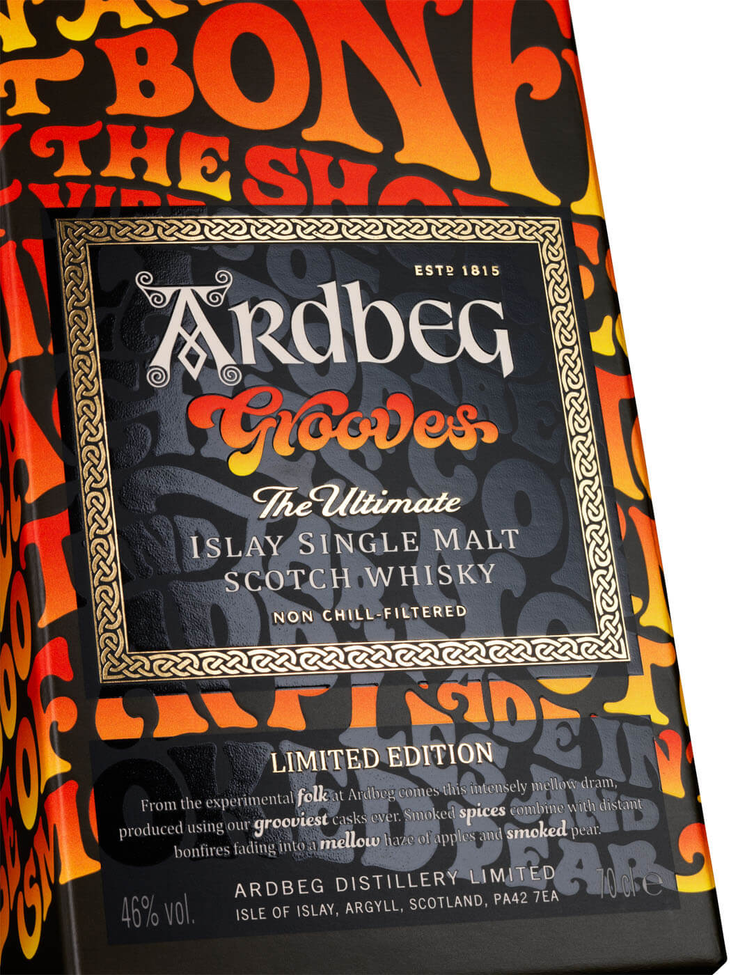 Das orange-rötliche Ardbeg Grooves General Release zeige den offiziellen Tasting-Notes zufolge einen Geruch mit intensiven Aromen von geräuchertem Zimt und Paprika, antikem Leder und Sattelseife, mit den klassischen Ardbeg-Aromen von Kiefernharz, Teer und salziger Meeresgischt im Hintergrund. In der Ferne erkenne man ein duftendes Lagerfeuer an der Pier der Destillerie mit einer ungewöhnlich pikanten Note von Chili-gewürztem Fleisch. Ein kleiner Spritzer Wasser gebe einige schöne, unerwartete Aromen frei: Lavendelseife, gemahlener weißer Pfeffer mit floralen Noten. Frischer Blumenduft mische sich mit Korianderblättern und Minze. Auf der Zunge drifte ein kraftvoll-salziges Mundgefühl in süße Schwingungen von Melassesirup, Vanille-Popcorn, gesalzenen Früchten wie Pfirsiche mit Ruß und Teer. Unverwechselbare pikante Noten von rauchigem BBQ, Paprika und Senf – gewürzt mit einem Schleier aus Äpfeln und geräucherten Birnen, fast wie von Birnen Cider. Der Nachhall liefere geräucherte Paprika und Aromen eines Lagerfeuers mit einer sanften Süße.