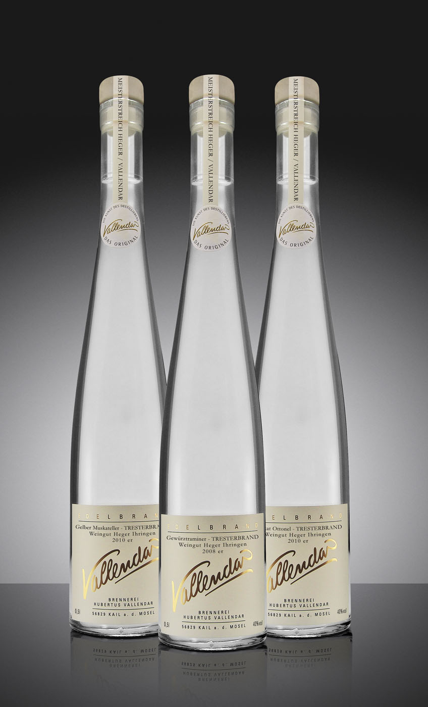 Die in Kail an der Mosel gelegene Brennerei Hubert Vallendar führt drei seltene Tresterbrände ein. Zusammen mit Winzer Joachim Heger vom Weingut Dr. Heger in Ihringen am Kaiserstuhl kreierte Edelbrenner Hubertus Vallendar im Doppelbrandverfahren die neuen Edelbrände: Gewürztraminer Tresterbrand 2008, Gelber Muskateller Tresterbrand 2010 und Muskat Ottonel Tresterbrand 2010. Die Alkoholvolumina betragen jeweils 40 Prozent. Einige weitere Raritäten sollen derzeit noch in Fässern ruhen und zu gegebener Zeit freigegeben werden.