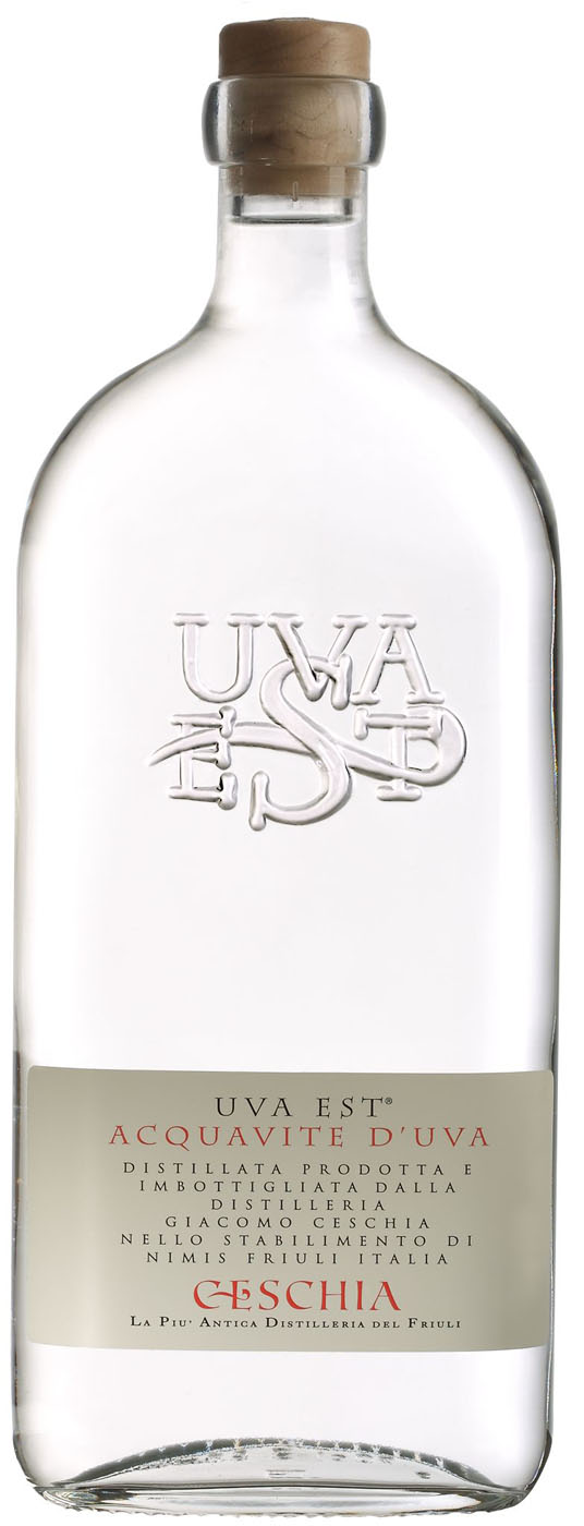 Von Ceschia gelangt auch der Uva Est Acquavite d’Uva auf den deutschen Markt. Dabei handelt es sich nicht um einen Grappa im klassischen Sinne, sondern um ein Obst-Destillat, welches aus der Destillation von frischen Trauben aus dem Friaul gewonnen wird.