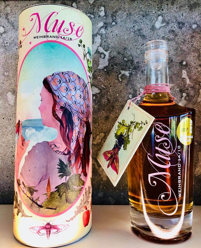 Im Jahr 2014 brannte Franziska Bischof den Rotwein Regent und den Weißwein Müller-Thurgau des nahen Familienweinguts Müller für den Muse Weinbrand. Zunächst kam das Destillat in neue Rhöneichenfässer. Danach folgte ein Finish in Barriquefässer, in dem zuvor ein kräftiger Rotwein des selben Weinguts reifen durfte. Nach mindestens drei Jahren der Fassreifung wurde der Weinbrand im vergangenen Mai mit einem Alkoholgehalt von 36 Prozent abgefüllt. Die Auflage umfasst 408 Exemplare.