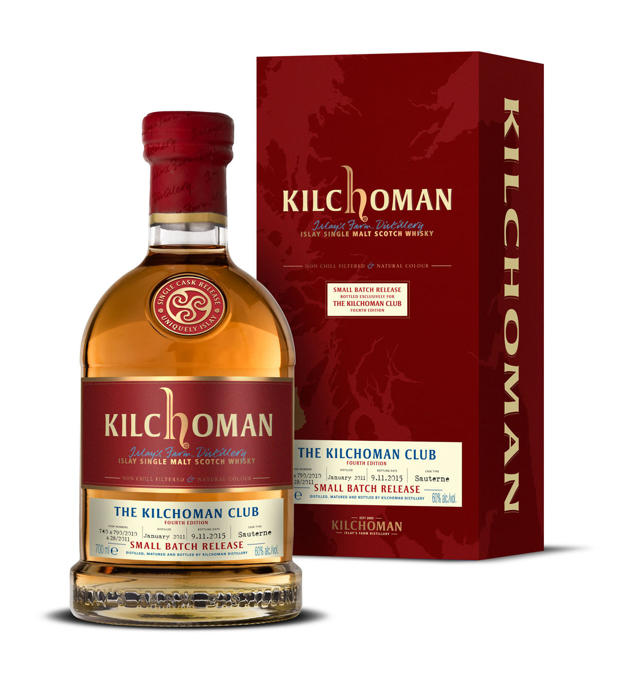 Registrierte Club-Mitglieder der schottischen Whiskybrennerei Kilchoman können sich seit heute Vormittag den exklusiven Kilchoman Club Release Fourth Edition sichern. Die Sonderabfüllung reifte seit dem Januar 2011 für fast fünf Jahre ausschließlich in Sauternefässern und wurde mit einer Fassstärke von 60 Prozent abgefüllt. Außerdem verzichtet die auf der Insel Islay gelegene Destillerie wie gewohnt auf Farbstoff sowie eine Kältefiltration. Aus drei Fässern entstanden nur circa 900 Flaschen, individuell nummeriert und von Hand etikettiert.