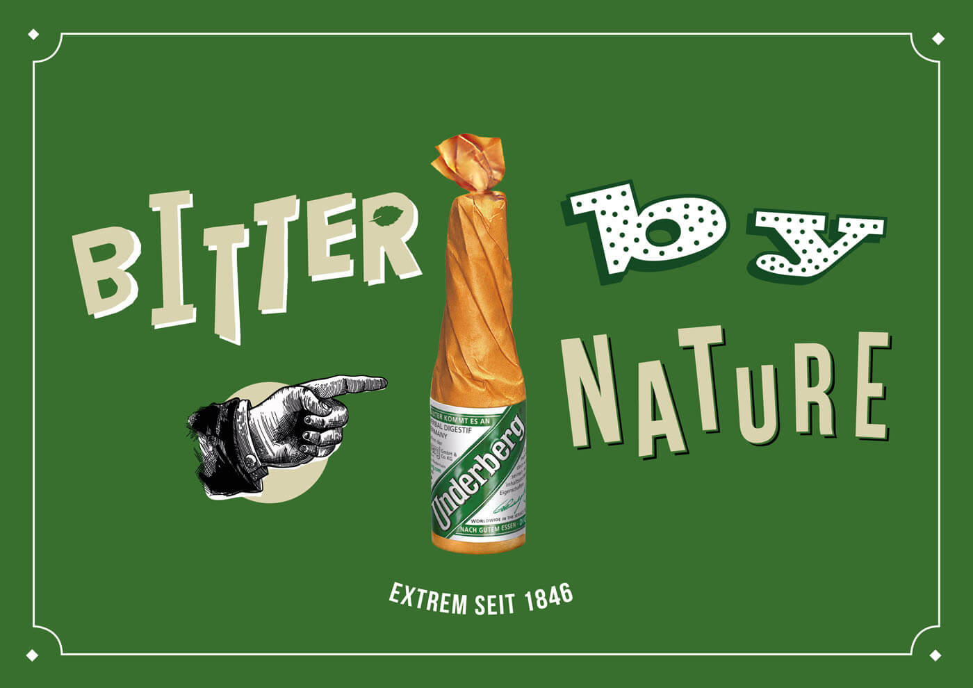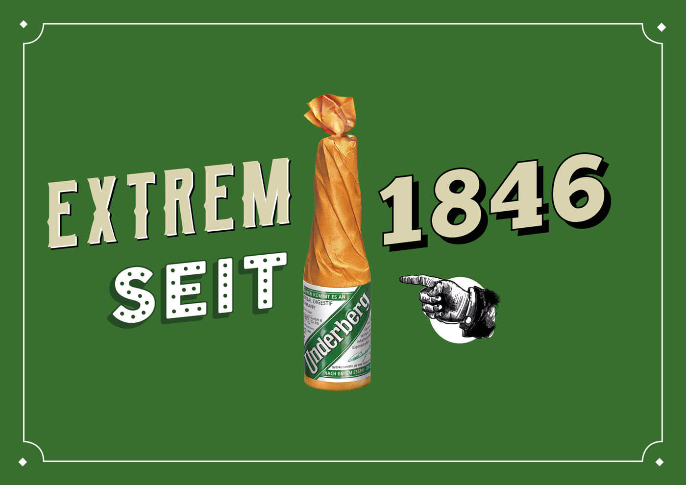 „Extrem seit 1846“ lautet der Claim der neuen Ausrichtung und Kampagne der deutschen Traditionsmarke Underberg. Mit der Neupositionierung liegt der Fokus verstärkt auf der Einzigartigkeit von Underberg – was die geheime Herstellung auf der Basis von 43 Kräutern aus aller Welt, aber auch die zum Markenzeichen gewordene Portionsflasche in Strohpapier anbelangt. Die Kampagne wurde in ausdrucksstarke Visuals übertragen, die den als unvergleichlich geltenden Charakter auf originelle Art aufgreifen und so jung und alt gleichermaßen ansprechen sollen. Dabei wird die Flasche als unverwechselbares Wiedererkennungsobjekt ins Zentrum gerückt und von charismatischen sowie teils selbstironischen Aussagen gerahmt. Das Unternehmen in Rheinberg will vor allem auf zeitgemäße Medien wie Online und Social Media setzen, um über diese Kanäle die Konsumenten zu erreichen.