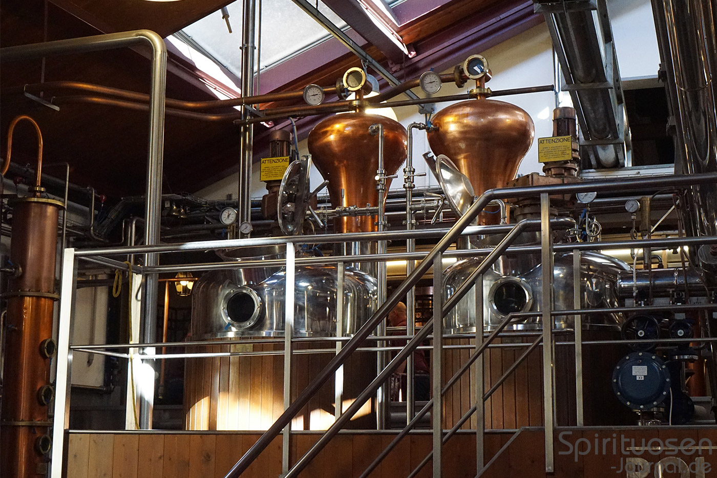Für die Destillation verfügt man über drei verschiedenartige Brennapparaturen. Ein nicht unwesentlicher Teil des Grappas entsteht auf traditionellen Dampfkesseln, von denen heute zwölf vorhanden sind. Die ersten drei wurden Ende der 1920er-Jahre angeschafft, die letzten vier im Jahr 1983.