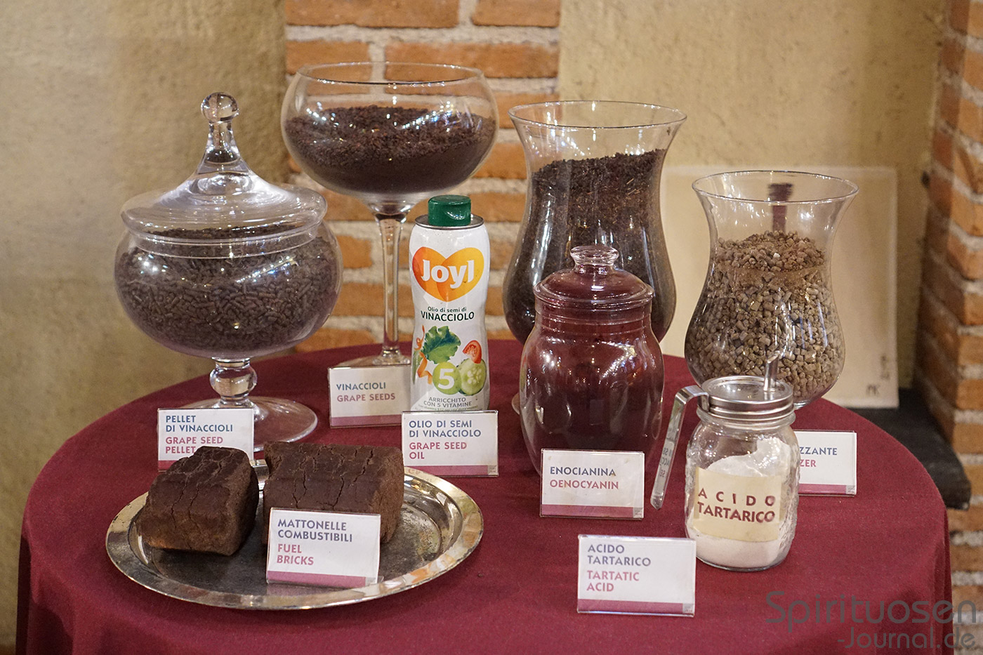 Heute nutzt die Poli Distillerie betontermaßen frischen Trester, und diesen teilweise sortenrein oder exklusiv von einem namhaften Weingut. Die grobe Rechnung lautet, dass aus 100 Kilogramm Trauben 80 Kilogramm Most zur Herstellung von 100 Flaschen Wein und 20 Kilogramm Trester zur Herstellung von zwei Flaschen Grappa gewonnen werden können. Der verbrauchte Trester kann noch vielfältig weiterverwendet werden – beispielsweise als Brennstoff, als Speiseöl oder als Weinsäure.