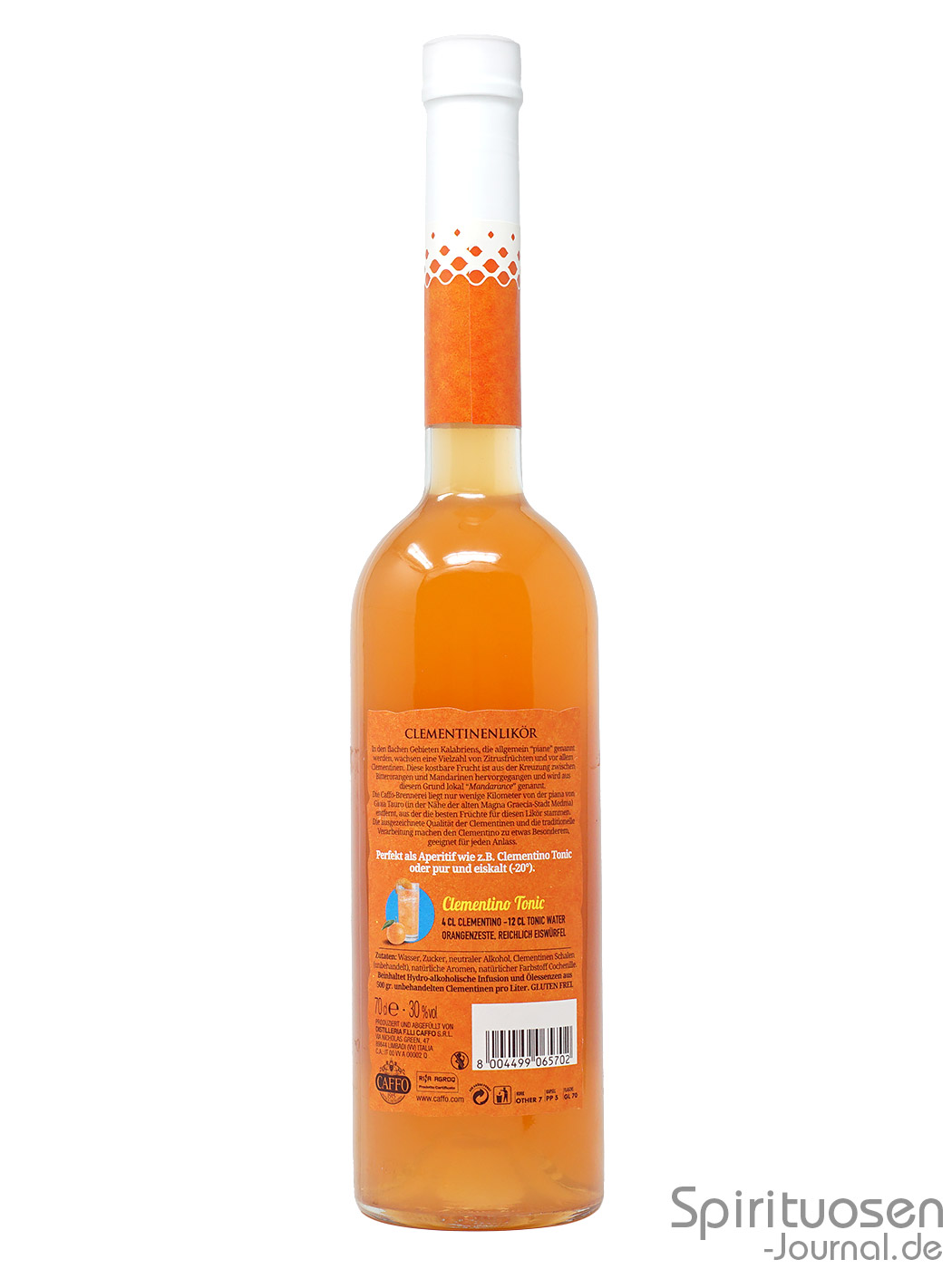 In dem von Likören geprägten Sortiment der italienischen Gruppo Caffo 1915 findet sich der Caffo Clementino della Piana. Im Mittelpunkt dieses Likörs steht die geografisch geschützte Clementine di Calabria von den eigenen Plantagen in den Ebenen der süditalienischen Region Kalabrien. Laut der Distilleria F.lli Caffo in Limbadi steckt in einer 0,7-l-Flasche ein halbes Kilogramm unbehandelte Früchte. Deren Schalen werden in Alkohol mazeriert, um so die Öle zu gewinnen. Des Weiteren wird mit natürlichen Aromen gearbeitet. Nach der obligatorischen Süßung wird der Likör mit einem Alkoholvolumen von 30 Prozent abgefüllt. Als farbgebendes Element wird Cochenille verwendet. Mehr Informationen zur Marke und Destillerie der getesteten Spirituose sind auf der Caffo-Übersichtsseite zu finden.