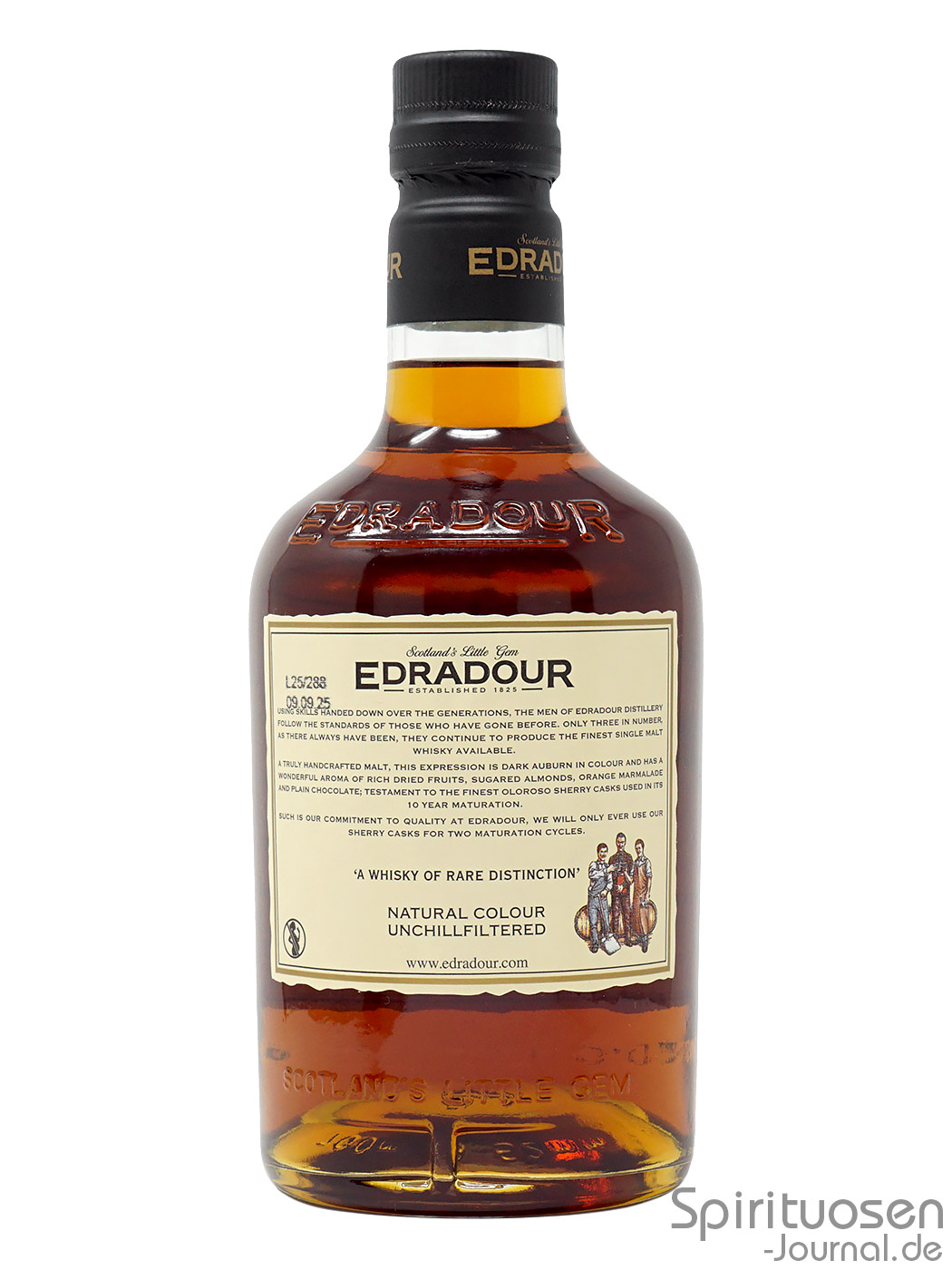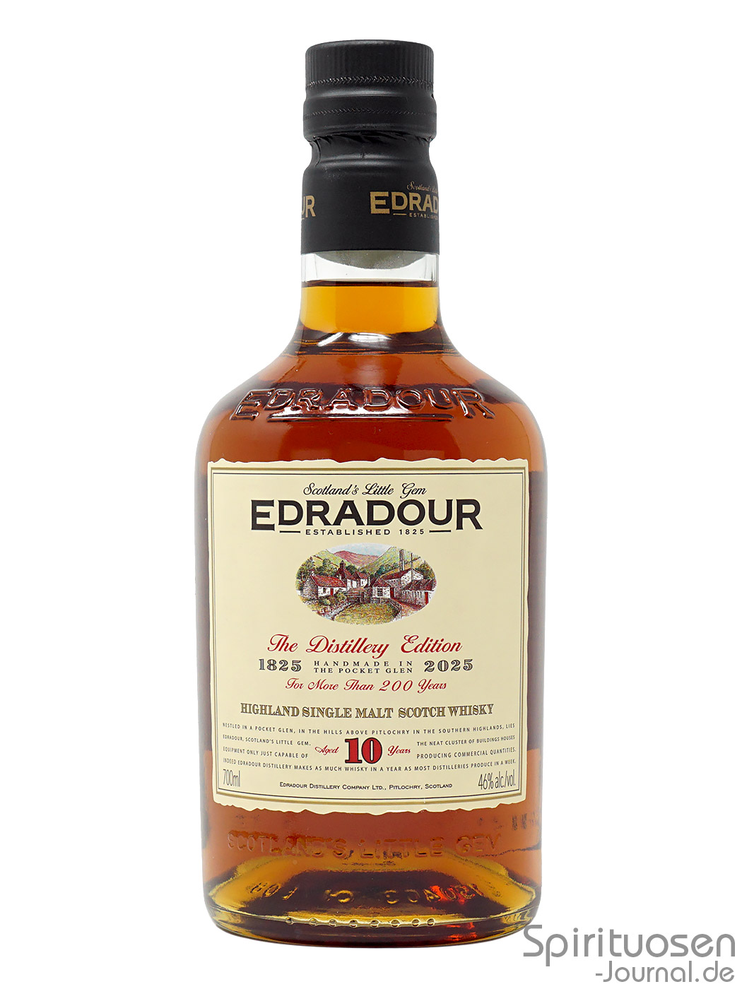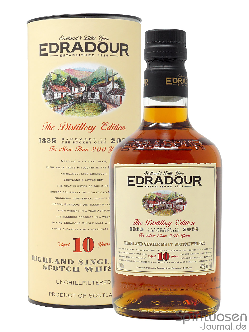 Anlässlich des 200-jährigen Bestehens der Edradour Distillery in den schottischen Highlands ist eine Reihe an 200th Anniversary Bottlings entstanden, darunter der Edradour 10 Jahre 200th Anniversary. Die Sonderedition des originalen Edradour 10 Jahre, der sogenannten The Distillery Edition, kam anlässlich des Jubiläums mit einem von 40 auf 46 Prozent angehobenen Alkoholvolumen in Flaschen. Zudem verzichtete man deshalb auf eine Kältefiltration. Wie das Original weist auch dieser auf als klein beschriebenen Kupferbrennblasen aus ungetorftem Gerstenmalz und dem Quellwasser der Ben Vrackie Springs destillierte Single Malt Scotch Whisky eine zehnjährige Reifezeit in Ex-Oloroso-Sherry-Casks auf. Der Umfang der Limitierung verbleibt im Dunkeln. Mehr Informationen zur Marke und Destillerie der getesteten Spirituose sind auf der Edradour-Übersichtsseite zu finden.