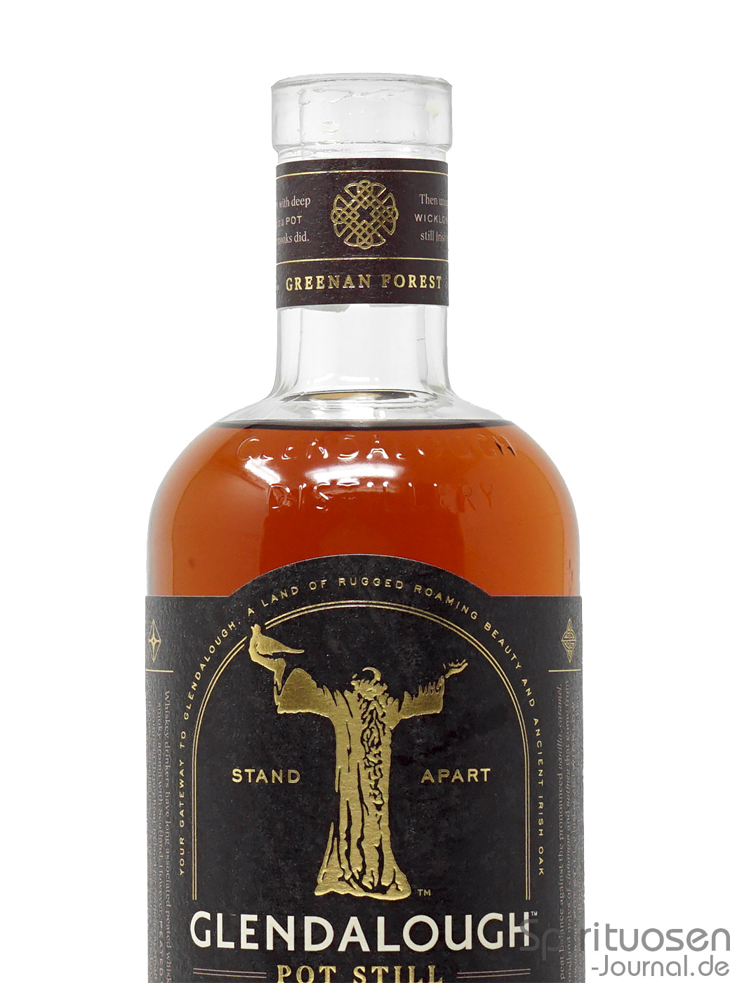 Abgefüllt wurde der dunkel kupfer- bis mahagonifarbene Glendalough Pot Still Peated in einer modernen Weißglasflasche. Der zylindrische Körper fällt hoch und eher schlank aus. Der Sockel ist wie gewohnt recht massiv, während die Schultern sehr rundlich daherkommen. Den Hals zeichnet eine mittlere Länge aus.