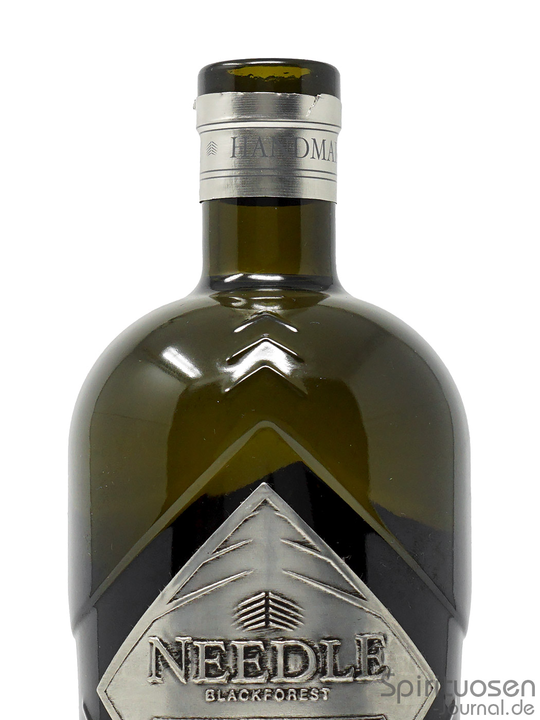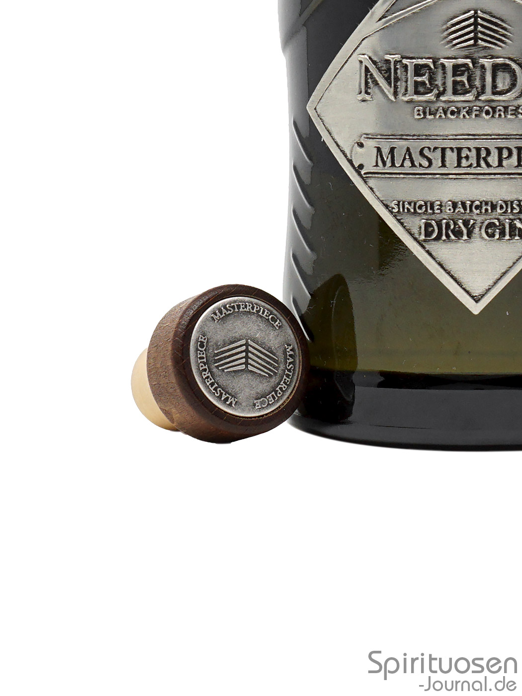 Erhältlich ist der klare Needle Masterpiece Gin in einer handlichen Flasche aus Grünglas. Der zylindrische Körper verfügt über Griffmulden, die wie Embossings auf Schulterhöhe stilisierte Fichtennadeln darstellen sollen. Über rundliche Schultern wird der Korpus mit einem mittellangen Hals verbunden.
