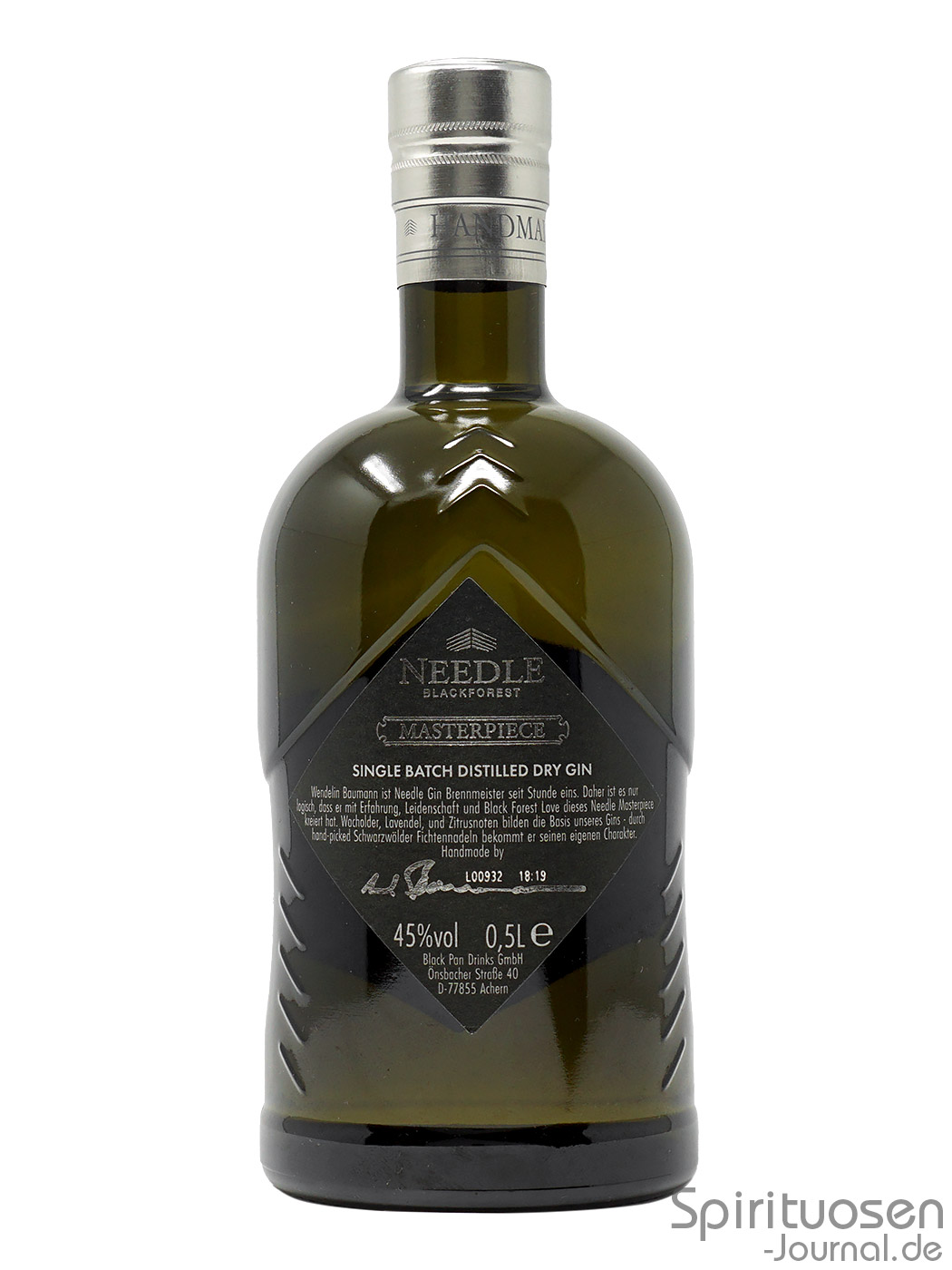Eigens für die Gastronomie legte die familiengeführte Bimmerle Private Distillery, die Standorte im baden-württembergischen Sasbach und im nahen Achern betreibt, im Frühling 2020 den Needle Masterpiece Gin auf. Im Kern handelt es sich um den originalen Needle Blackforest Gin, einen Distilled Dry Gin aus zehn Botanicals wie den Nadeln der Gemeinen Fichte aus dem Schwarzwald, Wacholderbeeren, Piment, Koriandersamen, Ingwerwurzel, Lavendel, Zimt sowie Orangen- und Zitronenschalen. Um eine höhere Mixability zu erzielen, wird die Menge der Botanicals verdoppelt. Soweit bekannt, werden die Zutaten klassisch in Neutralalkohol mazeriert und auf modernen Kupferbrennblasen destilliert. Den Angaben nach ist die Destillation CO2-neutral, fossile Brennstoffe sollen nicht zum Einsatz kommen. Das Abfüllen geschieht mit einem im Vergleich zum Original von 40 auf 45 Prozent angehobenen Alkoholvolumen. Auf die Hinzugabe von Zucker wird verzichtet. Mehr Informationen zur Marke und Destillerie der getesteten Spirituose sind auf der Bimmerle-Übersichtsseite zu finden.