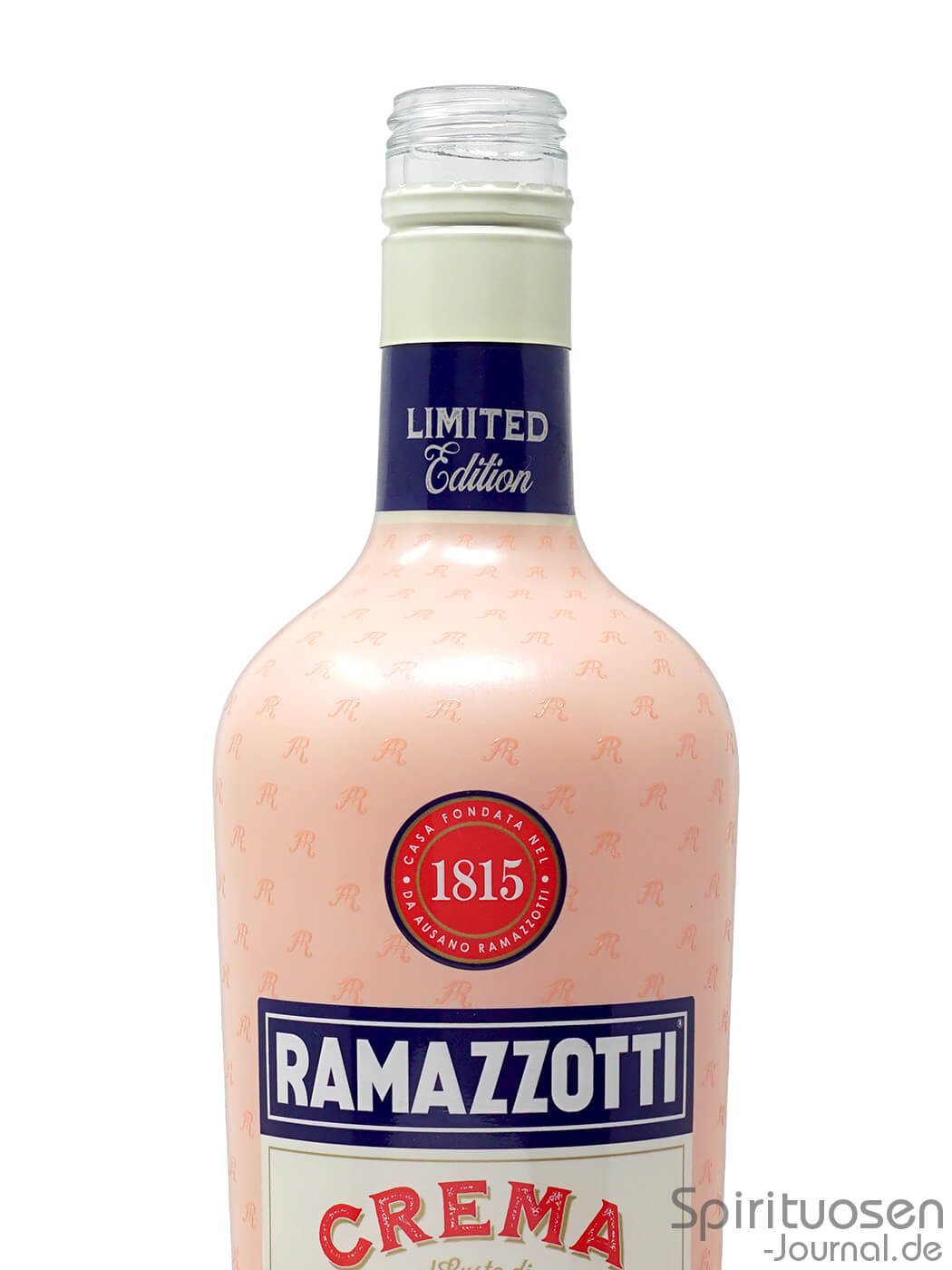 Der Verschluss, ein Drehmechanismus, ist wie die angrenzende Banderole in einem kühlen Weiß gehalten. Oben auf erblickt man zudem das Emblem von Ramazzotti mit dem Gründungsjahr im Zentrum.
