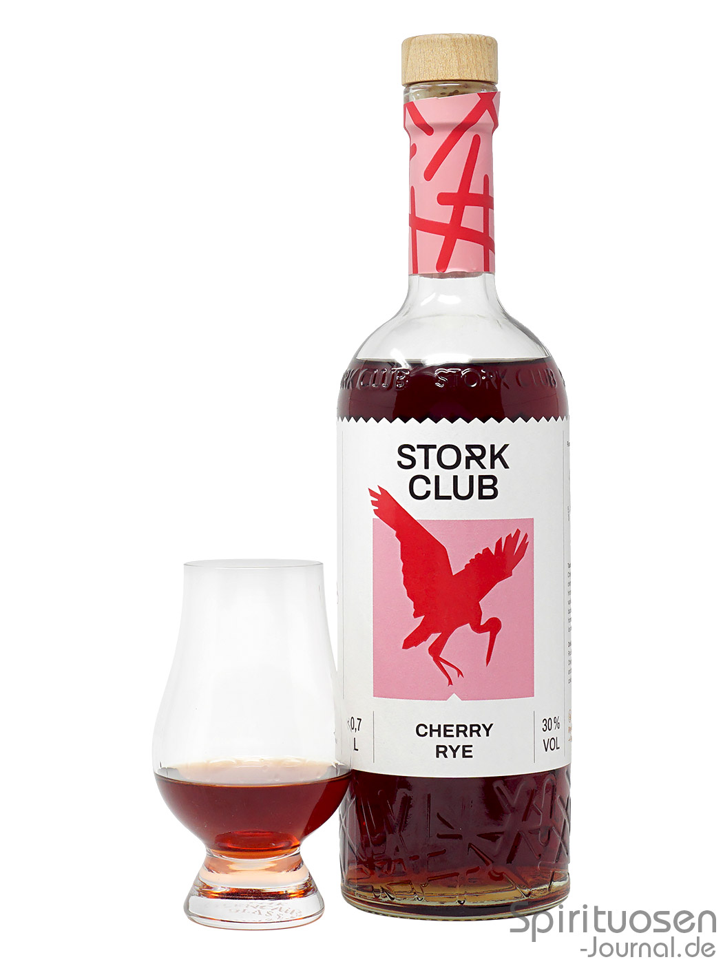 Abgefüllt wird der kräftig dunkelrote Stork Club Cherry Rye in die für die Marke typische Flasche, die ein modernes Design auszeichnet. Den eher hohen, zylindrischen Körper zeichnen im unteren Drittel Prägungen aus, die ein Storchennest andeuten sollen. Rundliche Schultern, ausgestattet mit dem Markennamen als Reliefprägung, verbinden den Körper mit einem langen Hals, den Reste einer rötlichen Schrumpfkapsel ebenfalls mit stilisierter Nestdarstellung umgeben.