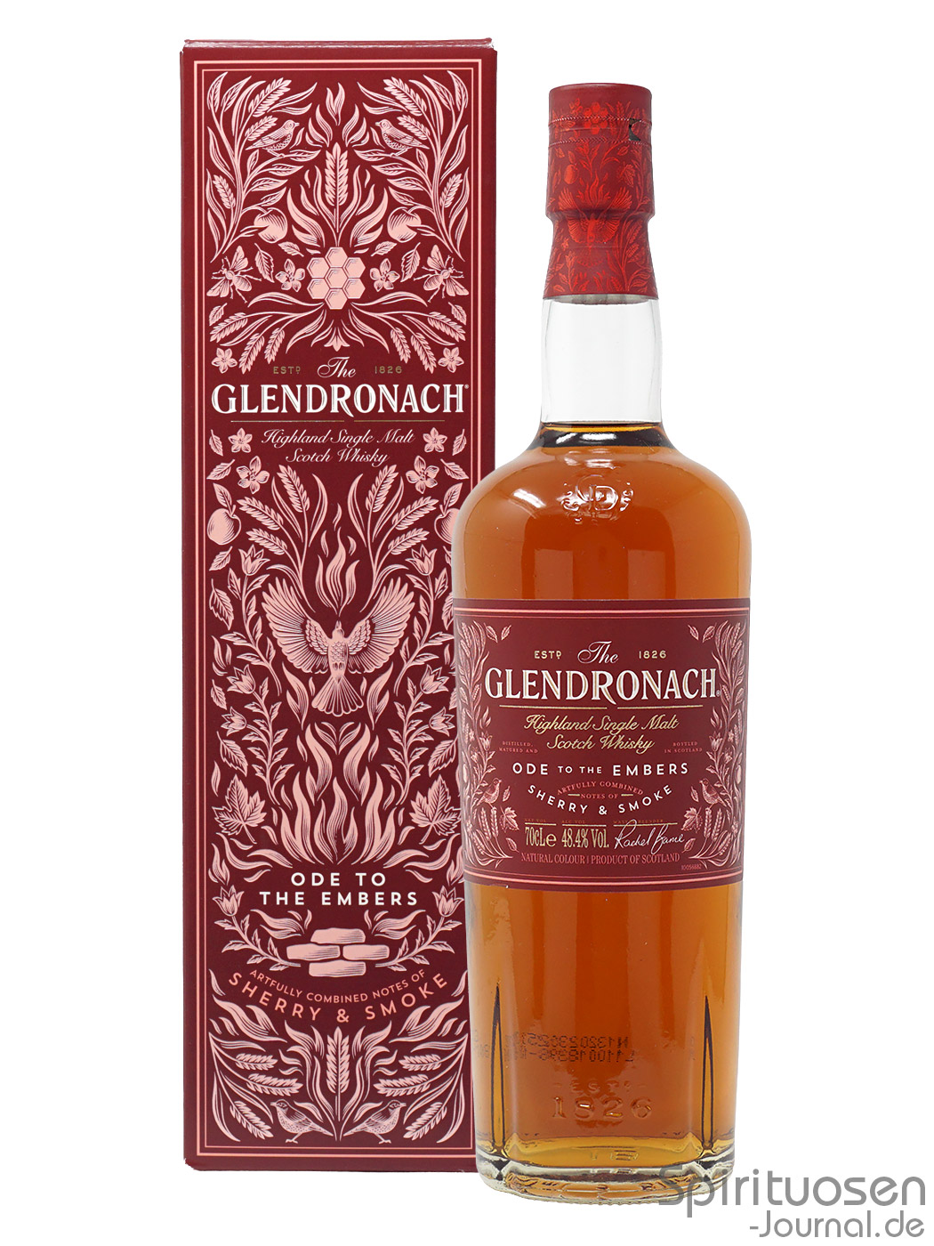 Seit Ende 2024 ergänzt die „The Master’s Anthology“ die Core Range der The Glendronach Distillery. Mit darunter: der The Glendronach Ode to the Embers. Dieser von Dr. Rachel Barrie, Master Blenderin der Brennerei in den schottischen Highlands, entwickelte Single Malt Scotch Whisky wird innerhalb eines begrenzten Zeitraums im Jahr aus getorften Gerstenmalz gewonnen – inoffiziellen Angaben zufolge liegt der Phenolgehalt bei 25 ppm. Das Wasser stammt aus dem nahen Dronac Burn. Auf die zweifache Destillation auf Kupferbrennblasen folgt eine Reifung sowohl in Ex-Oloroso- als auch in Ex-Pedro-Ximénez-Sherry-Casks. Eine Altersangabe existiert nicht. Das Abfüllen wird mit einem Alkoholgehalt von 48,4 Prozent, ohne Kältefiltration und ohne Farbstoff vorgenommen. Mehr Informationen zur Marke und Destillerie der getesteten Spirituose sind auf der The-Glendronach-Übersichtsseite zu finden.
