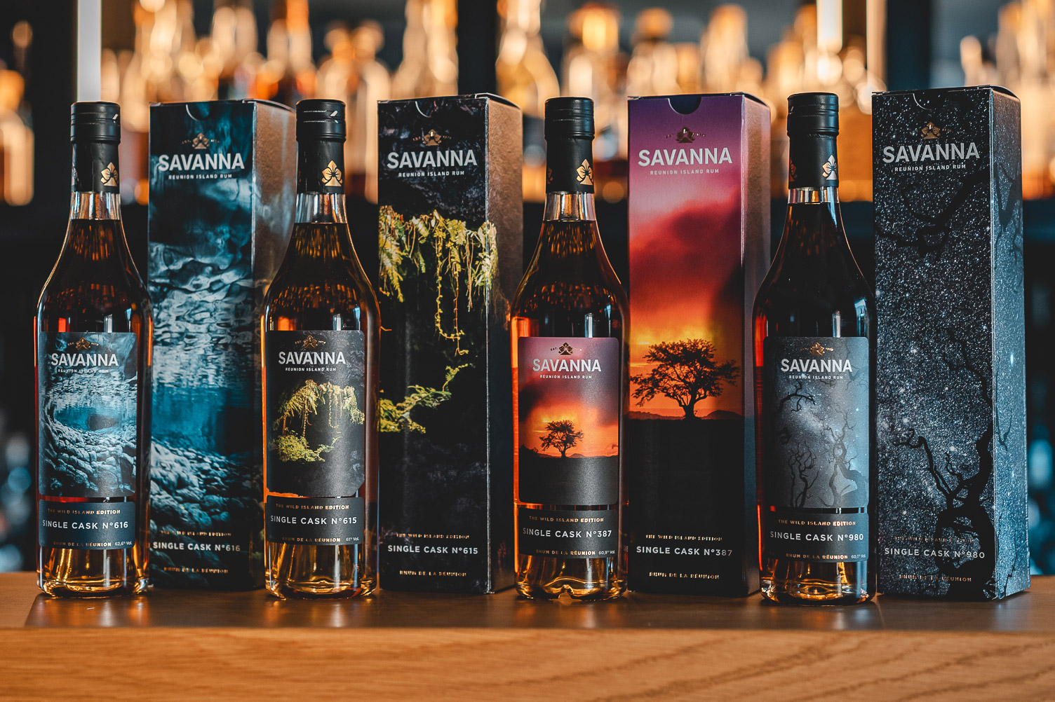 Zur The Wild Island Edition der Distillerie Savanna gehört ein Savanna 7 Jahre Cognac Cask #615, ein Rhum Agricole Extra Vieux, dem ein eher trockenes Profil mit reifem Steinobst, grasiger Frische und eleganter Würze nachgesagt wird. Mit von der Partie ist auch ein Savanna 13 Jahre Cognac Cask #387, ein Grand Arôme Rhum Extra Vieux, der als intensiv und opulent mit hoher Esterkonzentration beschrieben wird. Weiter in der Auswahl ist mit dem Savanna 15 Jahre Cognac Cask #616 ein als vollmundig und rund geltender Rhum Traditionnel Extra Vieux mit subtiler Süße, Trauben-, nussigen und florale Noten. Komplettiert wird die Reihe vom Savanna 15 Jahre Sherry Cask #980, einem Rhum Traditionnel Extra Vieux, der mit einem üppigen Profil mit deutlich dichteren, süßeren und dunkelfruchtigeren Tönen daherkommen soll. Abgesehen von Letztgenanntem, der aus einem Ex-Sherry-Cask kam, fand die tropische Reifung in Ex-Cognac-Casks aus französischer Eiche statt. Alle eint das Abfüllen naturbelassen mit individueller Fassstärke. Jeweils konnten mehrere hundert Flaschen à 0,5 Liter gewonnen werden.